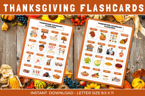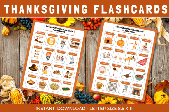 These Thanksgiving Vocabulary Flashcards are a fun and practical educational resource for helping children expand vocabulary while enjoying seasonal, holiday-themed learning activities.